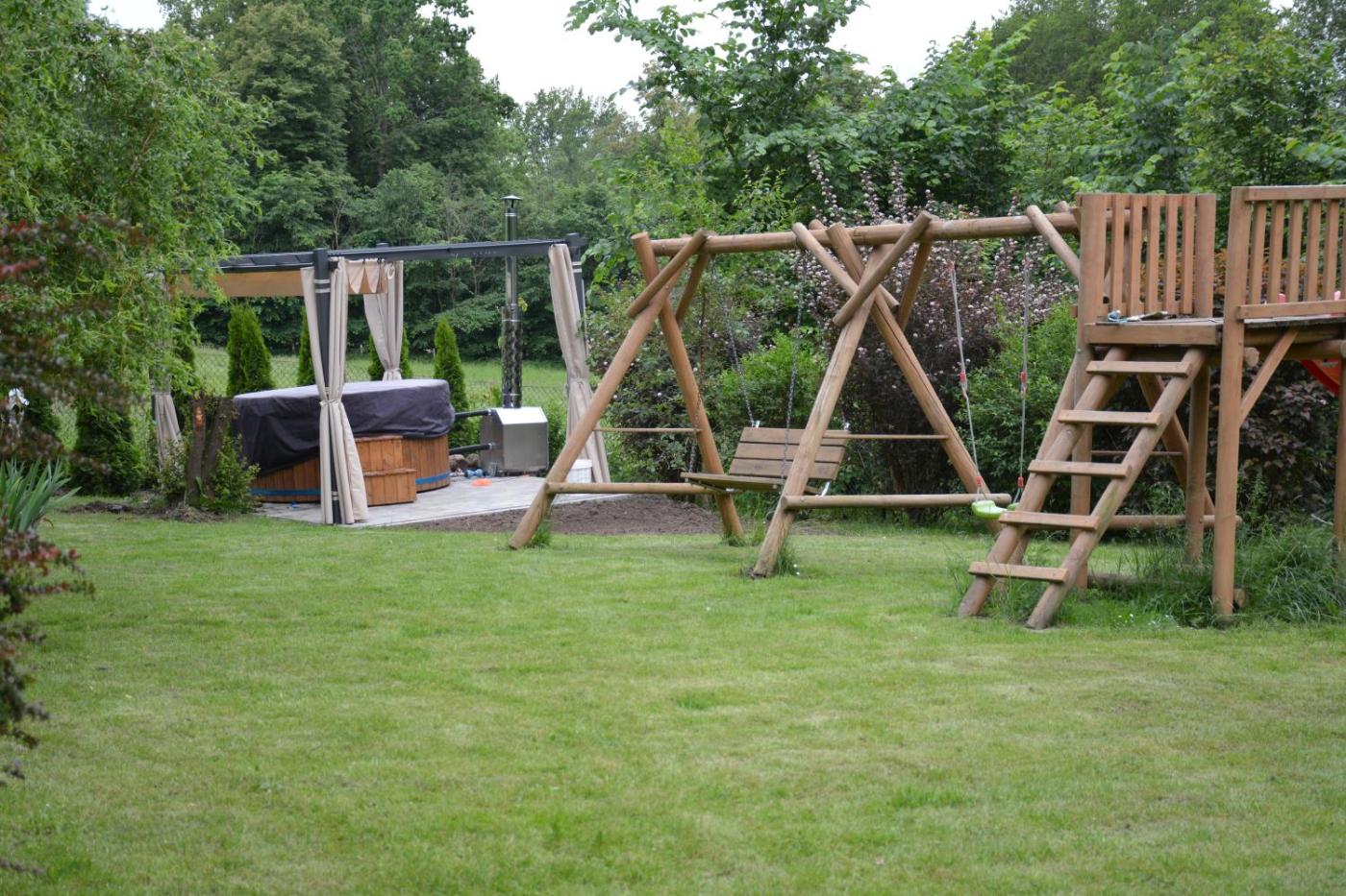 Dom z 2 sypialniami. This holiday home offers a hot tub. The holiday homes kitchen is available for cooking and storing food. Boasting a terrace with garden views, this holiday home also features heating and a flat-screen TV. The unit has 3 beds. Powierzchnia pokoju ok.: 70 mkw.